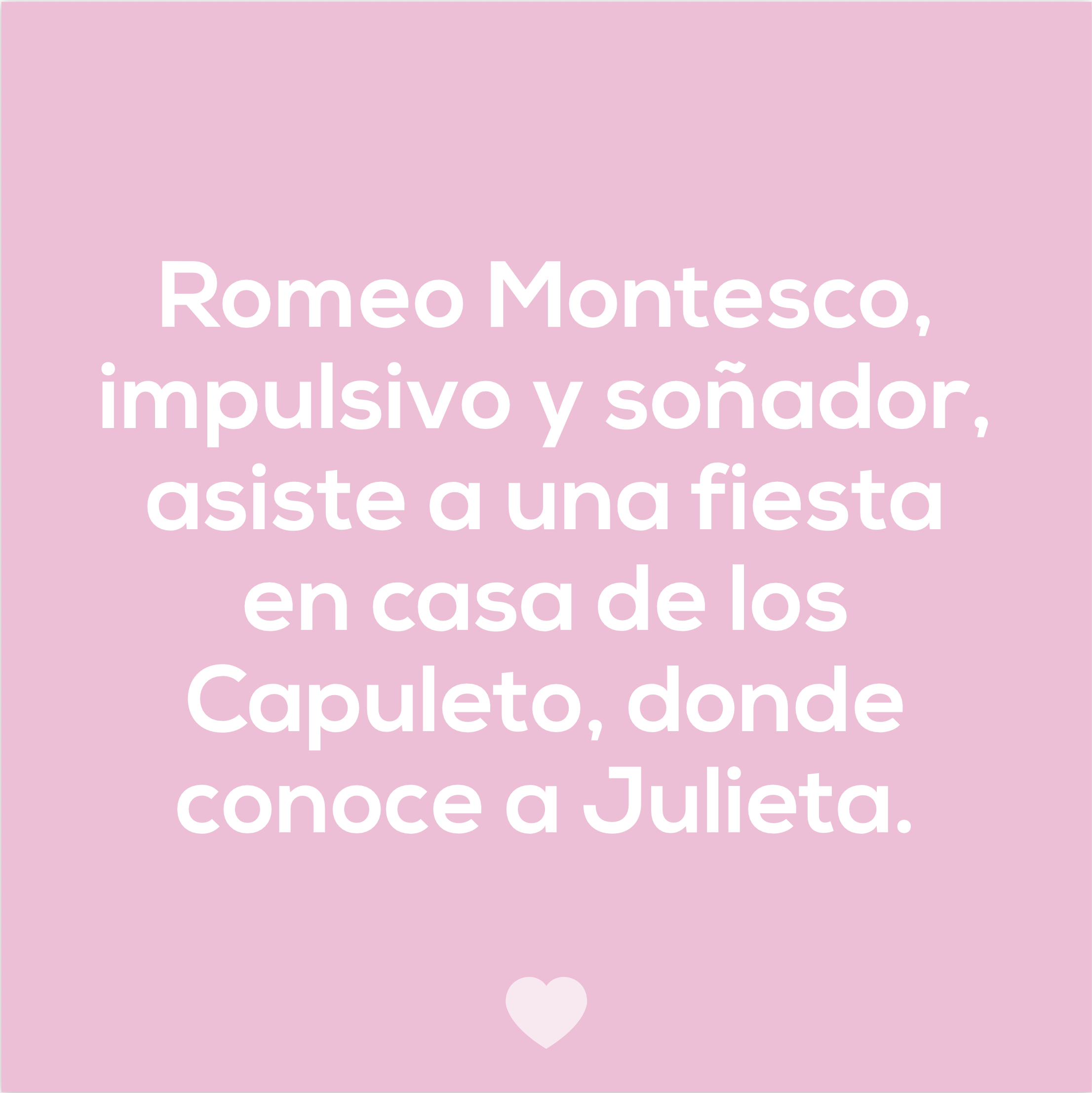 «Oh, Romeo, Romeo, ¿por qué has de ser Romeo? Niega a tus padres, rechaza tu nombre; o, si no quieres, júrame tu amor y yo renunciaré a ser Capuleto.»